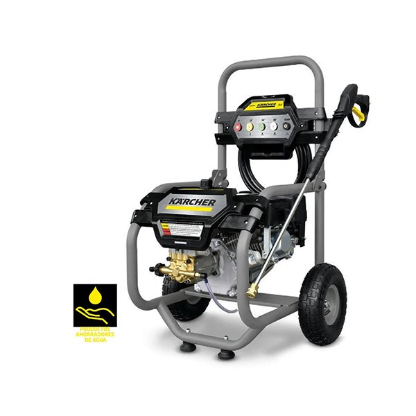 Lanza agua a presión en chorro para lavar vehículos, ventanas y paredes. Funciona con motor a gasolina.