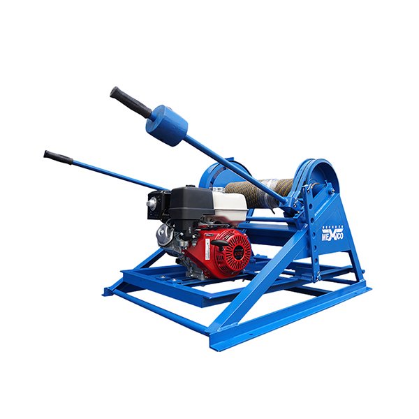 Se utiliza en la construcción de edificios para elevar materiales a la azotea o a pisos altos. Funciona con motor a gasolina. Incluye el malacate, pluma con giro, cable de acero, vogue y polea de arrastre.